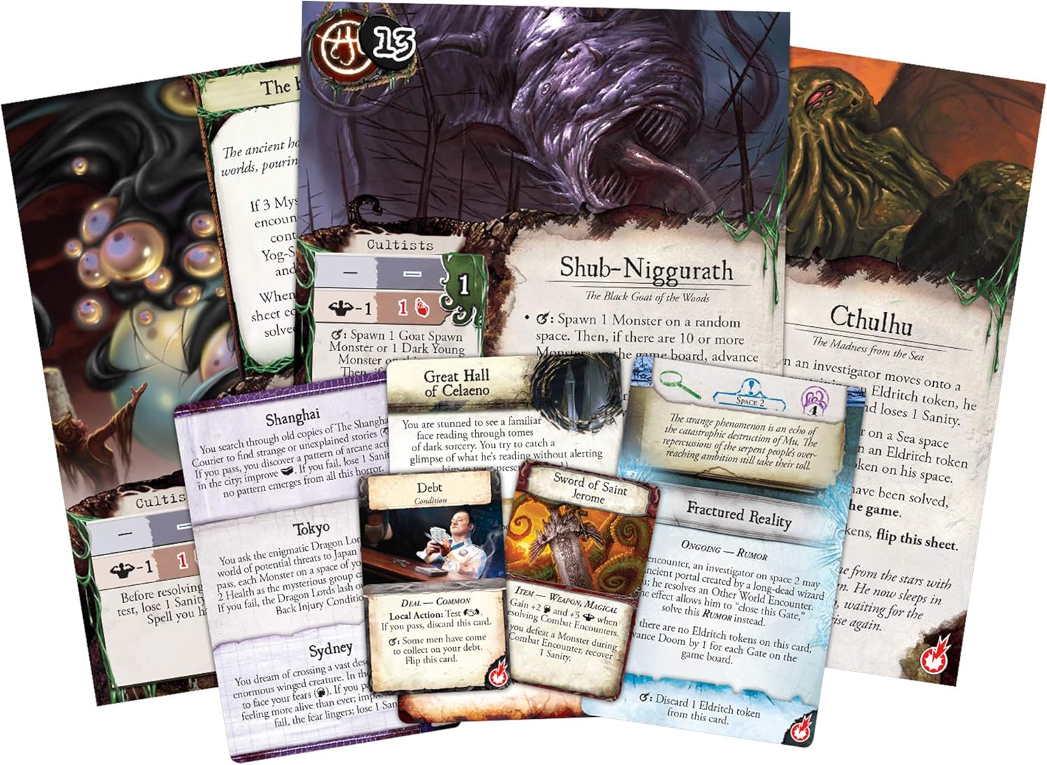 With twelve unique investigators, two hundred-fifty tokens, and over three hundred cards, Eldritch Horror presents an epic, world-spanning adventure with each and every game.