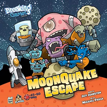 Finding and stopping the other players is your best plan, but each is hiding amongst decoys and traps. Player interaction focuses on a risk fraught variation of the classic 3-card Monte combined with a thematic "Bluffing" component that completely reverses the "Take That" mechanic. Can you use protective shields to lure opponents into picking the wrong hiding spot and keep your own plan from backfiring? Reach the rocket and prepare for a climactic battle--will you be prepared to capitalize on unexpected turn of events? Be the first to launch during the MoonQuake and you've Escaped the competition!