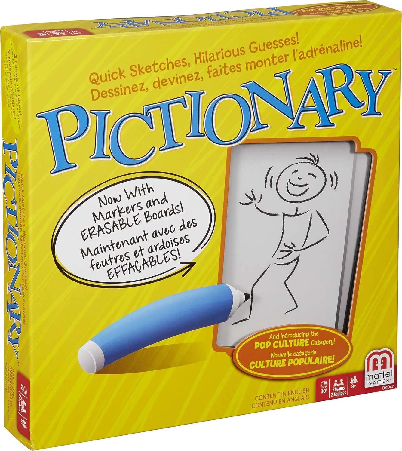 Pictionary is the classic family board game of quick sketches and hilarious guesses! In this outrageously funny game for casual gamers, teams take turns having a player sketch while the rest of the team guesses. Choose from 3 levels of clues, so even younger players can join in. Being an artist is never required and the guesses can be even more hilarious than the sketches!