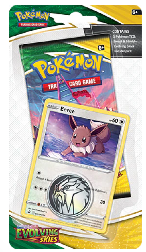 Feel the power of the shifting winds, and brace for an epic storm as mighty Dragon-type Pokémon make their triumphant return! Rayquaza VMAX leads the surge from on high, and Duraludon VMAX towers above the land in its Gigantamax form, joined by Dragonite V, Noivern V, and more. As the clouds part, Eevee’s Evolutions appear in a full rainbow of Pokémon V and Pokémon VMAX to signal a bright new day in Pokémon TCG: Sword & Shield—Evolving Skies!